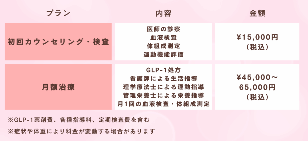 GLP-1投与開始、週1回の体調チェック、月1回の総合評価を実施。